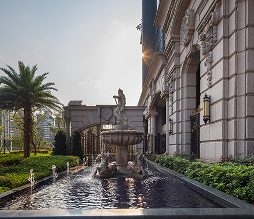 層次堆疊的古典花園,戰神「雅典娜」屹立